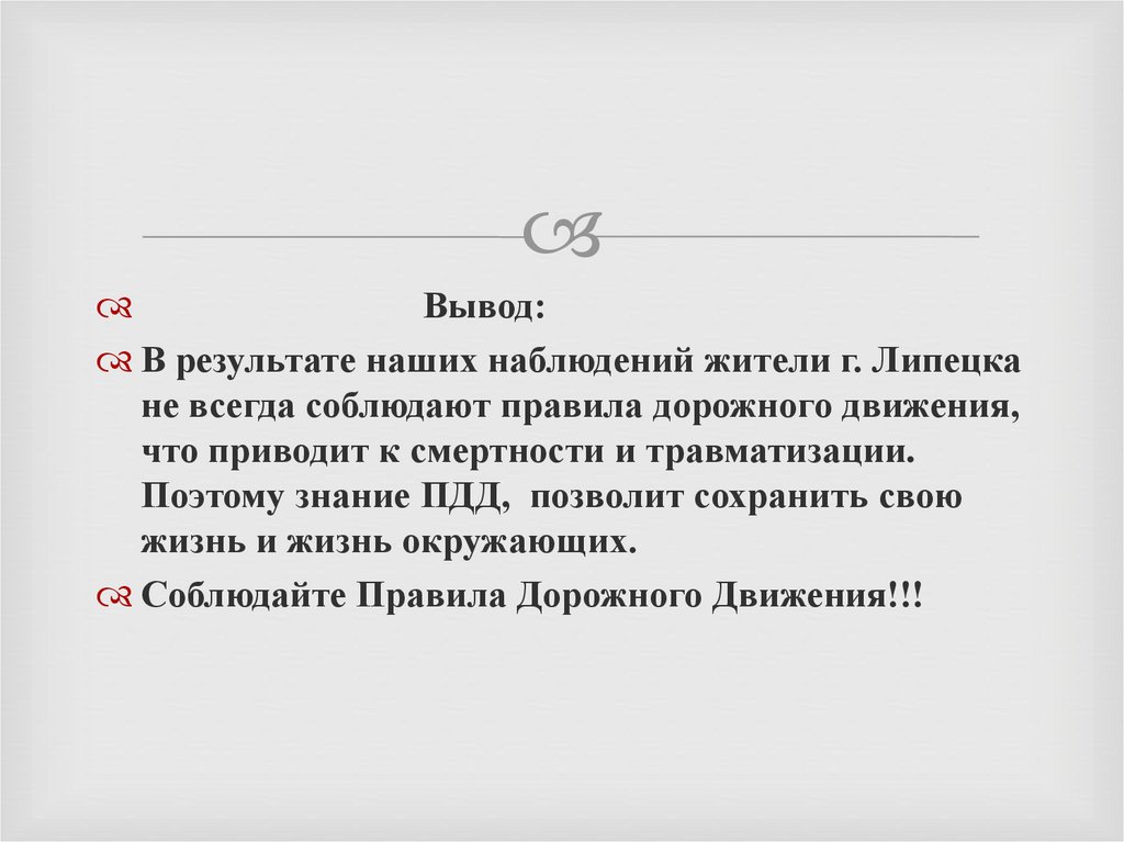 Вывод:В результате наших наблюдений жители г. Липецка