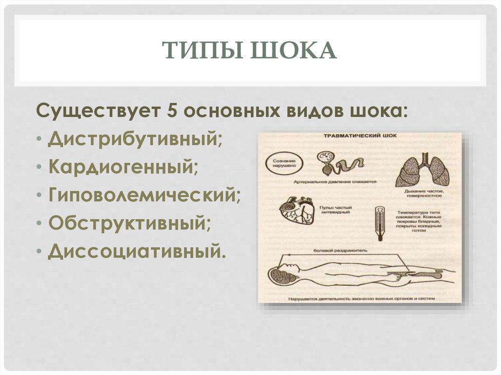 ТИПЫ ШОКАСуществует 5 основных видов шока:
