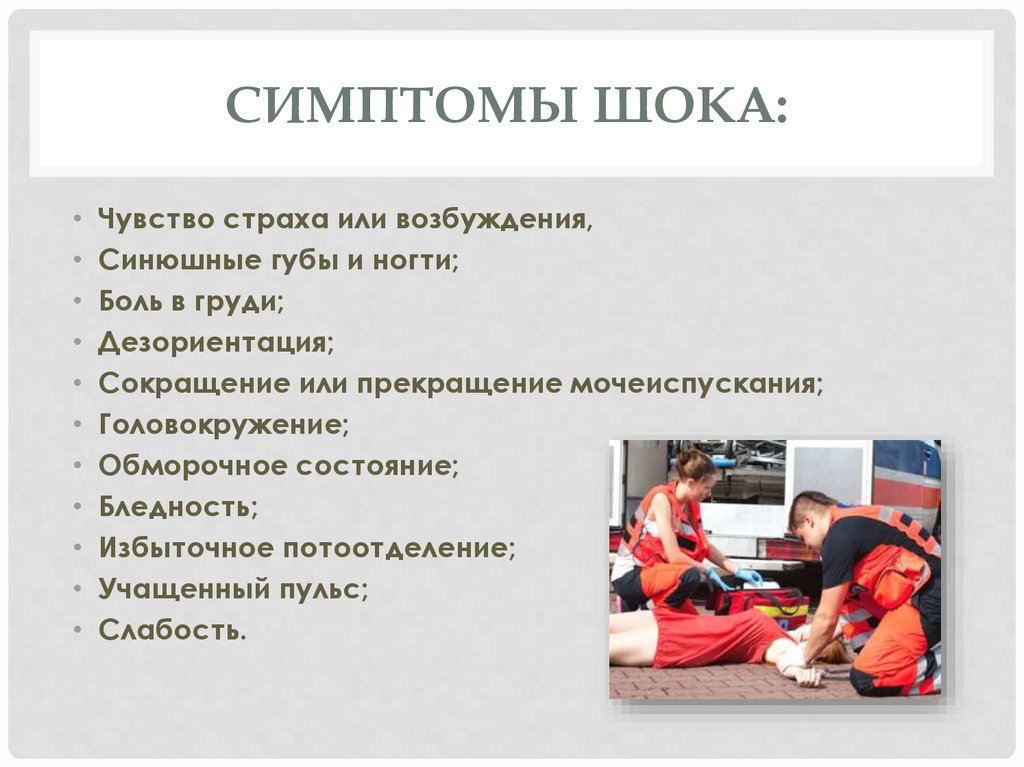 СИМПТОМЫ ШОКА:Чувство страха или возбуждения,