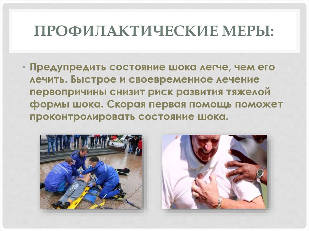 ПРОФИЛАКТИЧЕСКИЕ МЕРЫ:• Предупредить состояние шока легче, чем его