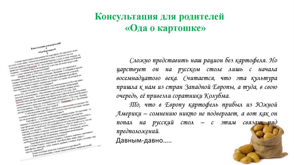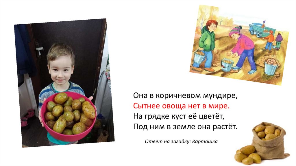 Грядку раскопай немножко,Глядь, а там живёт картошка.