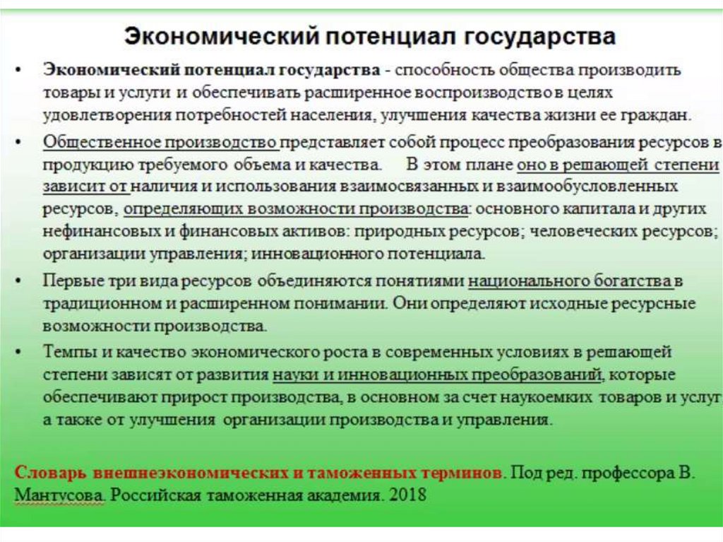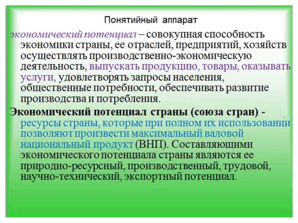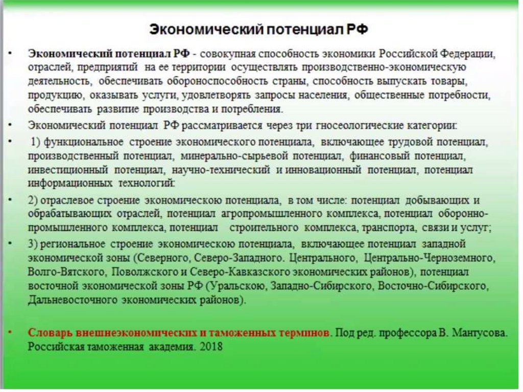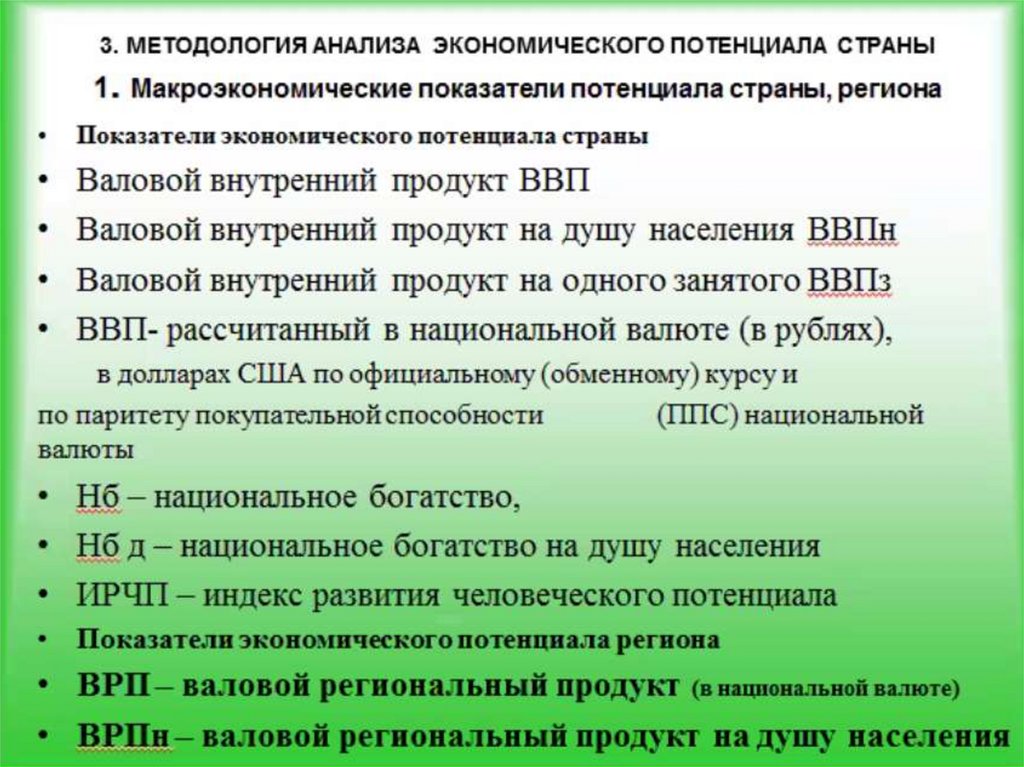 Предмет, основные понятия, методы анализа экономического потенциала Российской Федерации