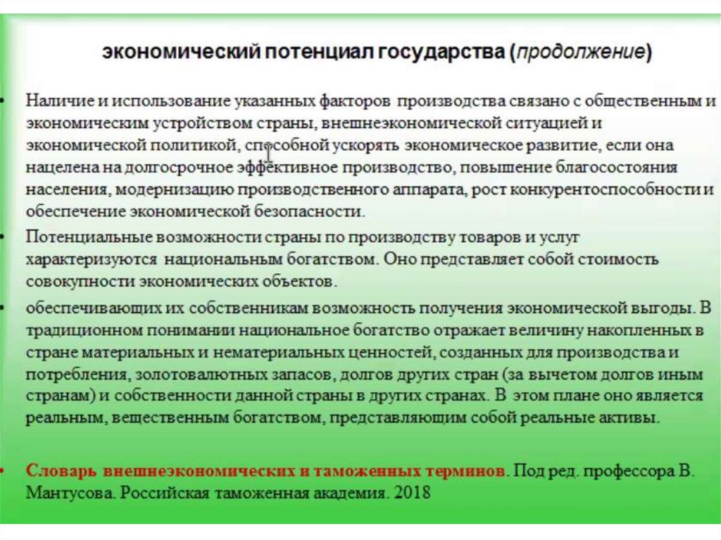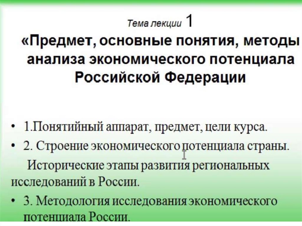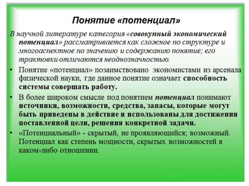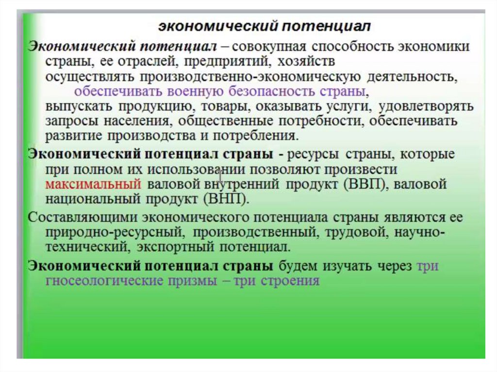 Предмет, основные понятия, методы анализа экономического потенциала Российской Федерации