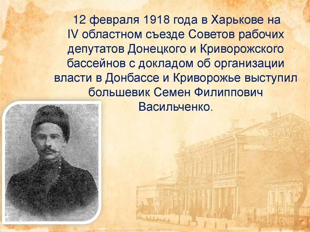 12 февраля 1918 года в Харькове наIV областном съезде Советов рабочих