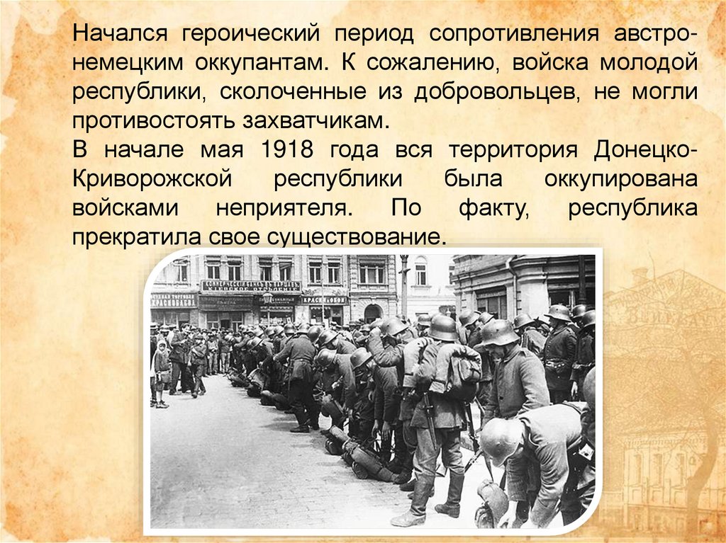 Начался героический период сопротивления австронемецким оккупантам. К сожалению, войска молодойреспублики, сколоченные из добровольцев, не могли