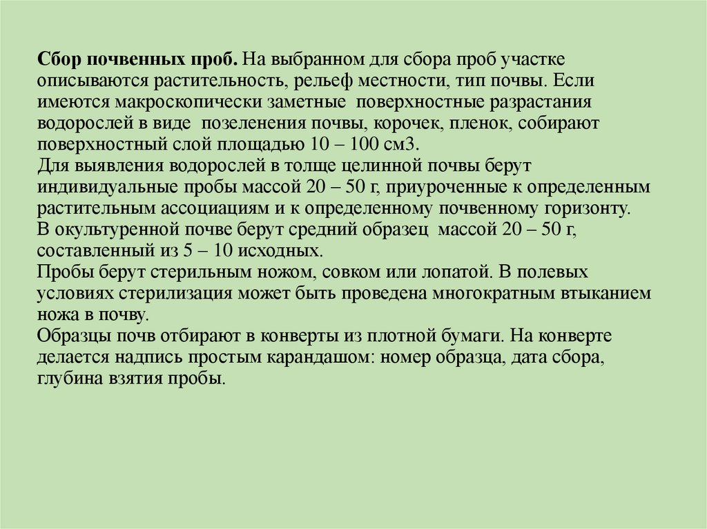 7. Как нужно отбирать пробы почвенных водорослей