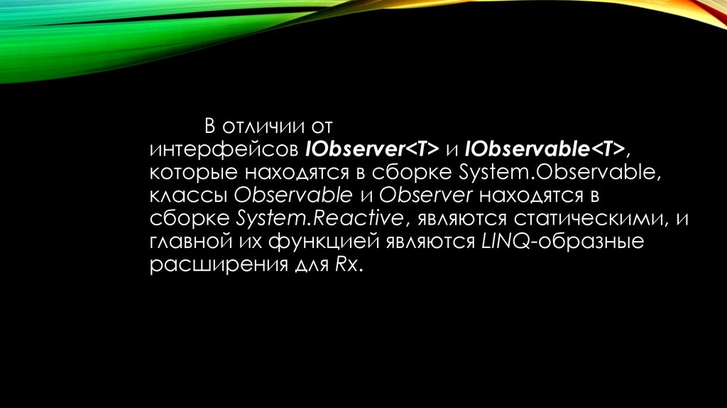 В отличии отинтерфейсов IObserver<T> и IObservable<T>,