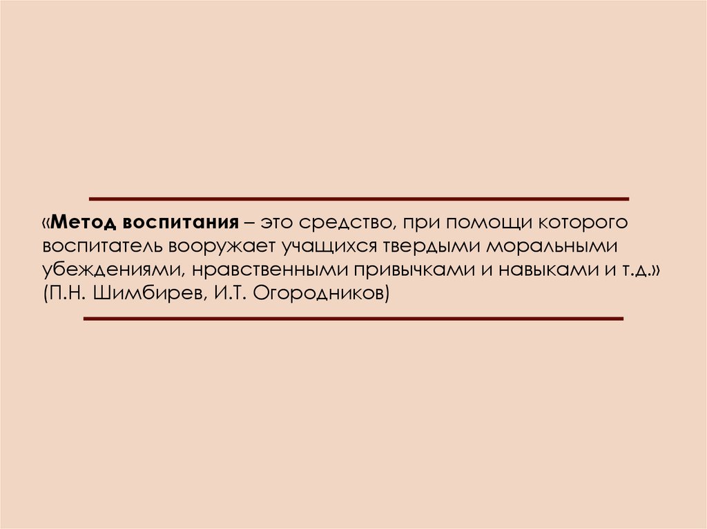 «Метод воспитания – это средство, при помощи котороговоспитатель вооружает учащихся твердыми моральными