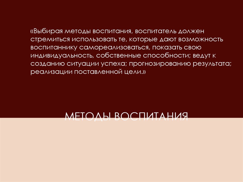 «Выбирая методы воспитания, воспитатель долженстремиться использовать те, которые дают возможность