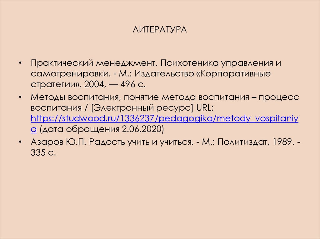 ЛИТЕРАТУРА• Практический менеджмент. Психотеника управления и