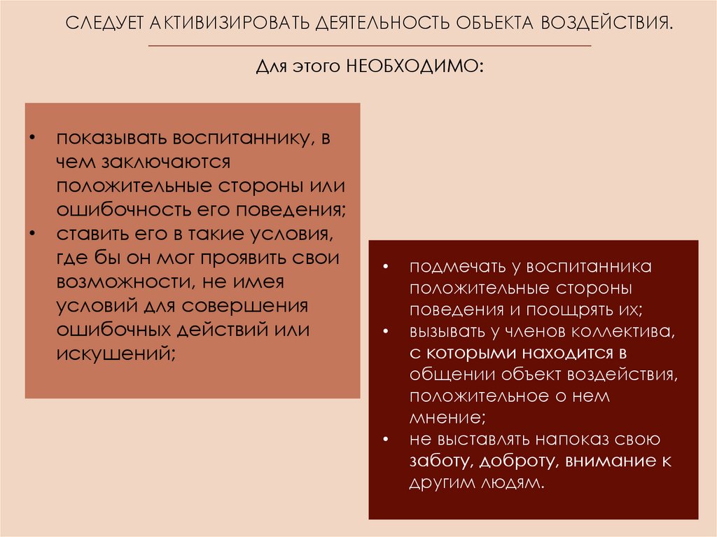 СЛЕДУЕТ АКТИВИЗИРОВАТЬ ДЕЯТЕЛЬНОСТЬ ОБЪЕКТА ВОЗДЕЙСТВИЯ.Для этого НЕОБХОДИМО:
