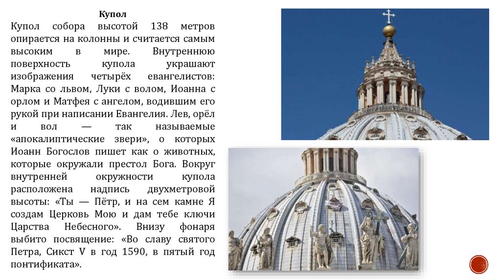 Собор святого ПетраСобор святого Петра — главный католический собор, важнейшее историческое христианское сооружение в мире. Является