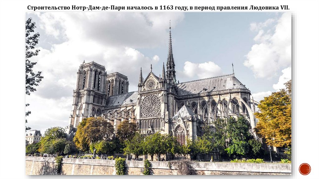 Строительство Нотр-Дам-де-Пари началось в 1163 году, в период правления Людовика VII.8.