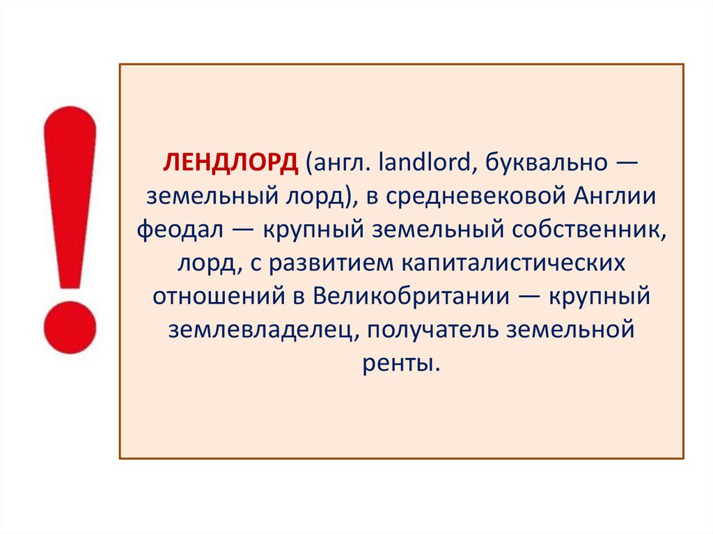 ЛЕНДЛОРД (англ. landlord, буквально —земельный лорд), в средневековой Англии