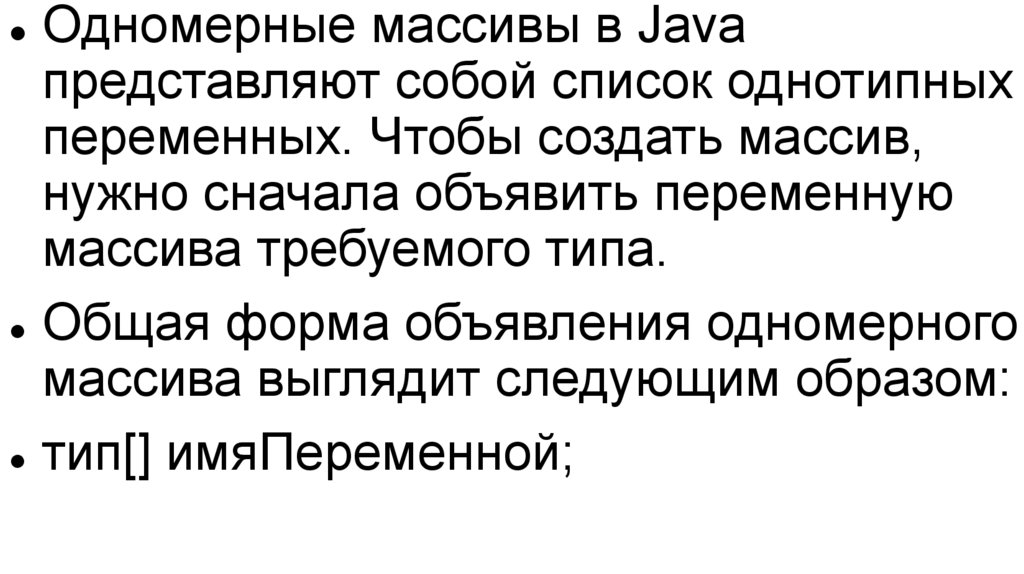 Одномерные массивы в Javaпредставляют собой список однотипных
