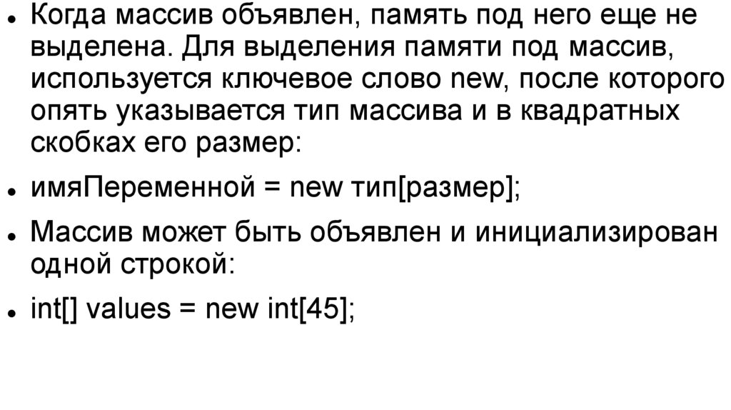 Массивы. Одномерные. Объявление и инициализация