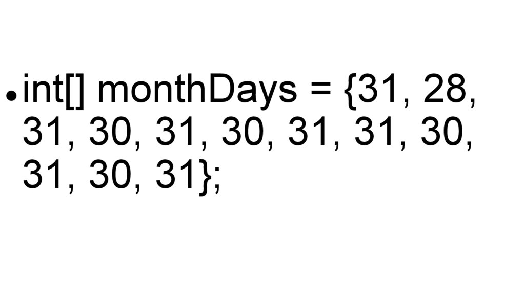 int[] monthDays = {31, 28,31, 30, 31, 30, 31, 31, 30,