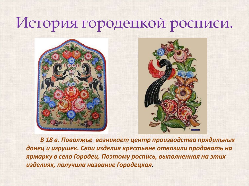 История городецкой росписи.В 18 в. Поволжье возникает центр производства прядильных