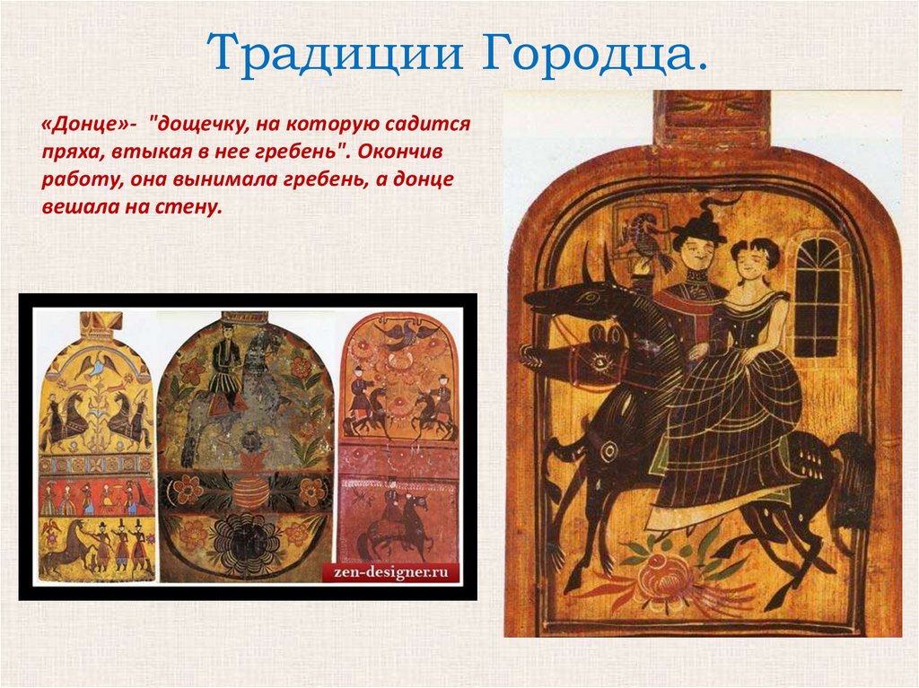 Традиции Городца.«Донце»- "дощечку, на которую садится