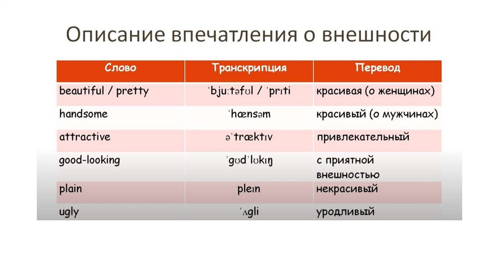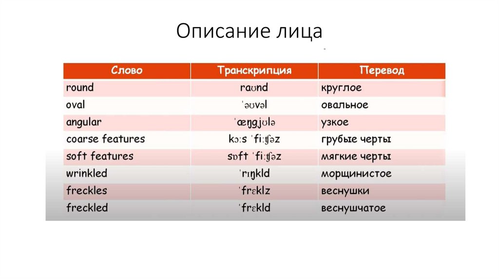 Описание лица