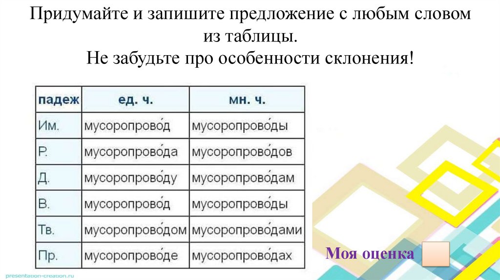 Придумайте и запишите предложение с любым словомиз таблицы.