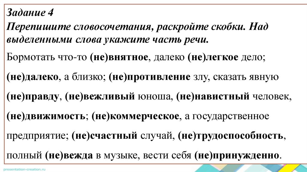 Задание 4Перепишите словосочетания, раскройте скобки. Над