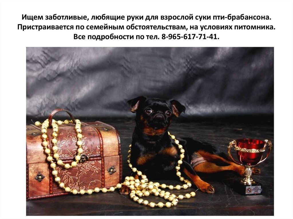 Ищем заботливые, любящие руки для взрослой суки пти-брабансона.