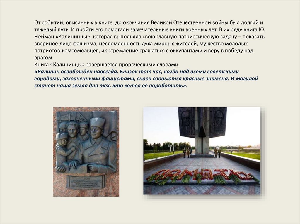 Книга «Калининцы» завершается пророческими словами: