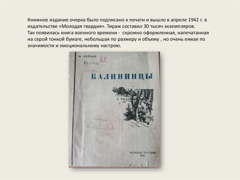 Книга Ю. Нейман «Калининцы»[Москва], 1942
