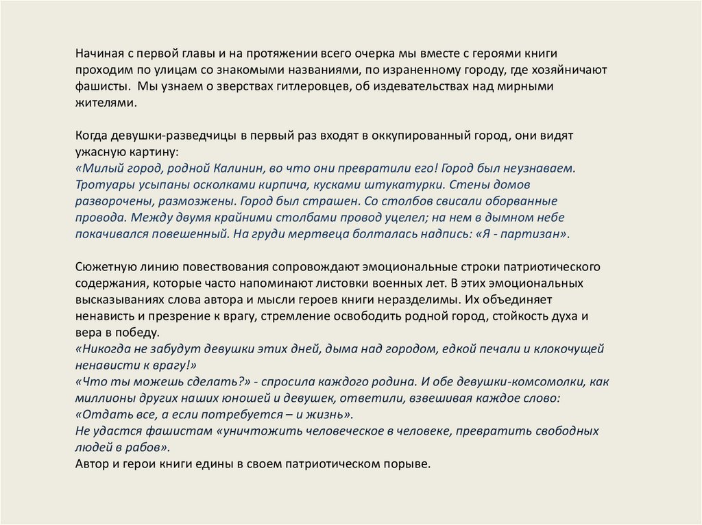 патриотов-комсомольцев, их стремление сражаться с оккупантами и веру в победу над