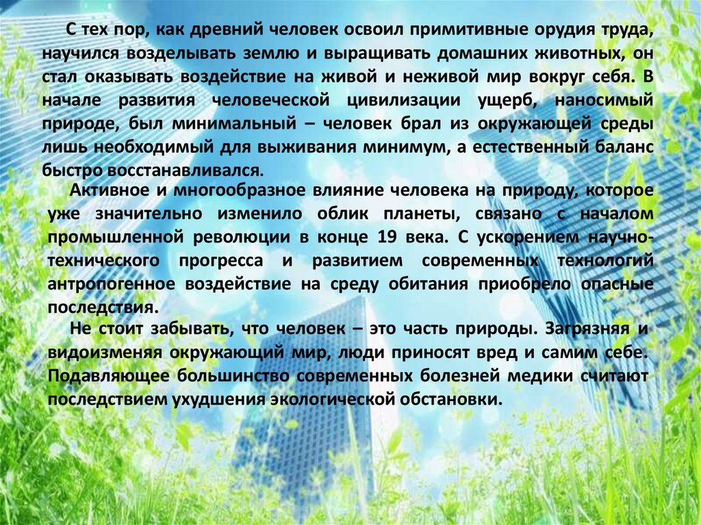 стал оказывать воздействие на живой и неживой мир вокруг себя. В