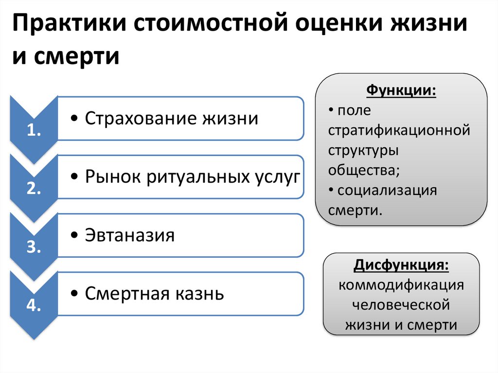 Практики стоимостной оценки жизнии смерти