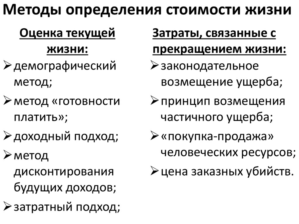 Методы определения стоимости жизниОценка текущей