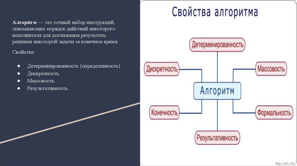 Алгори́тм — это точный набор инструкций,описывающих порядок действий некоторого