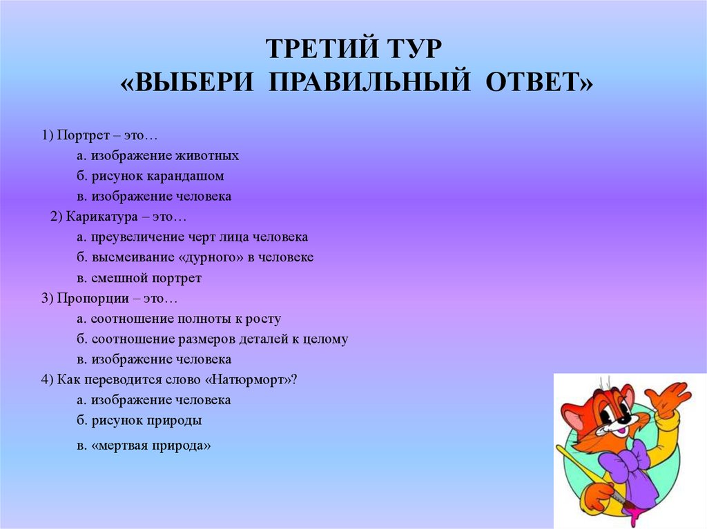 ТРЕТИЙ ТУР«ВЫБЕРИ ПРАВИЛЬНЫЙ ОТВЕТ»