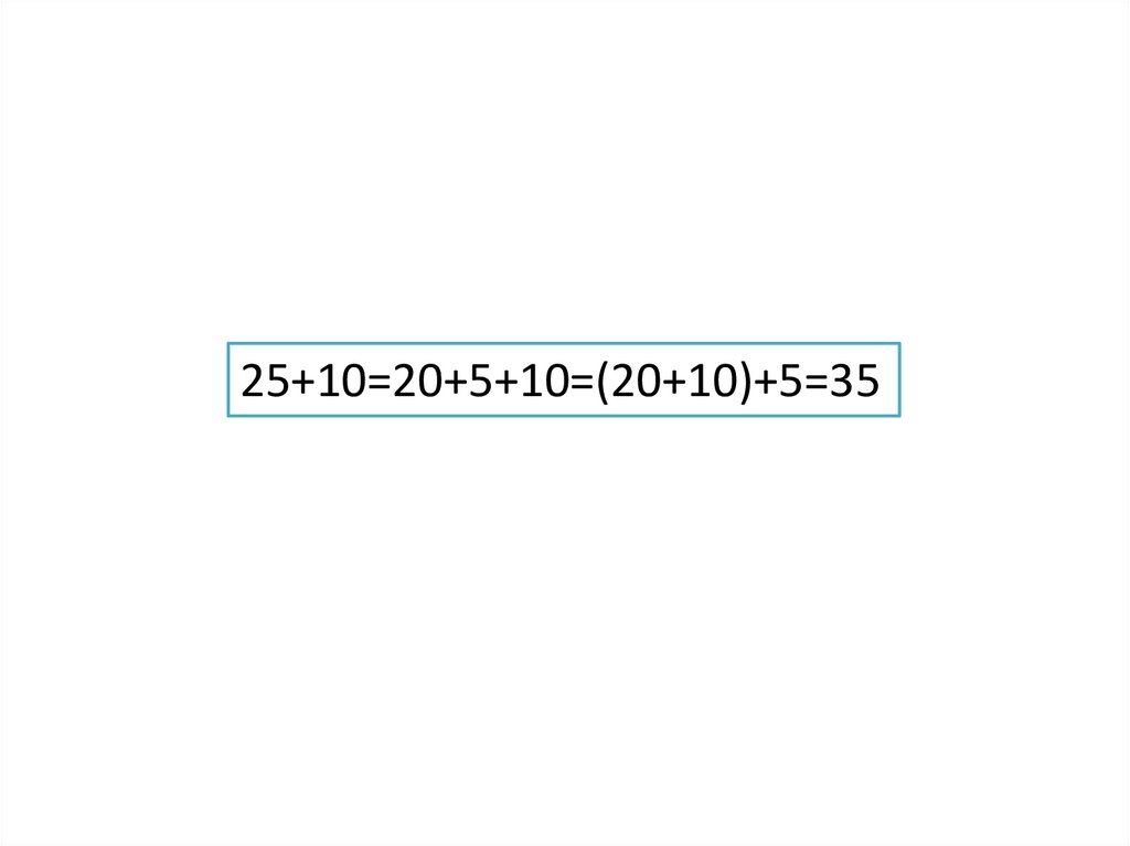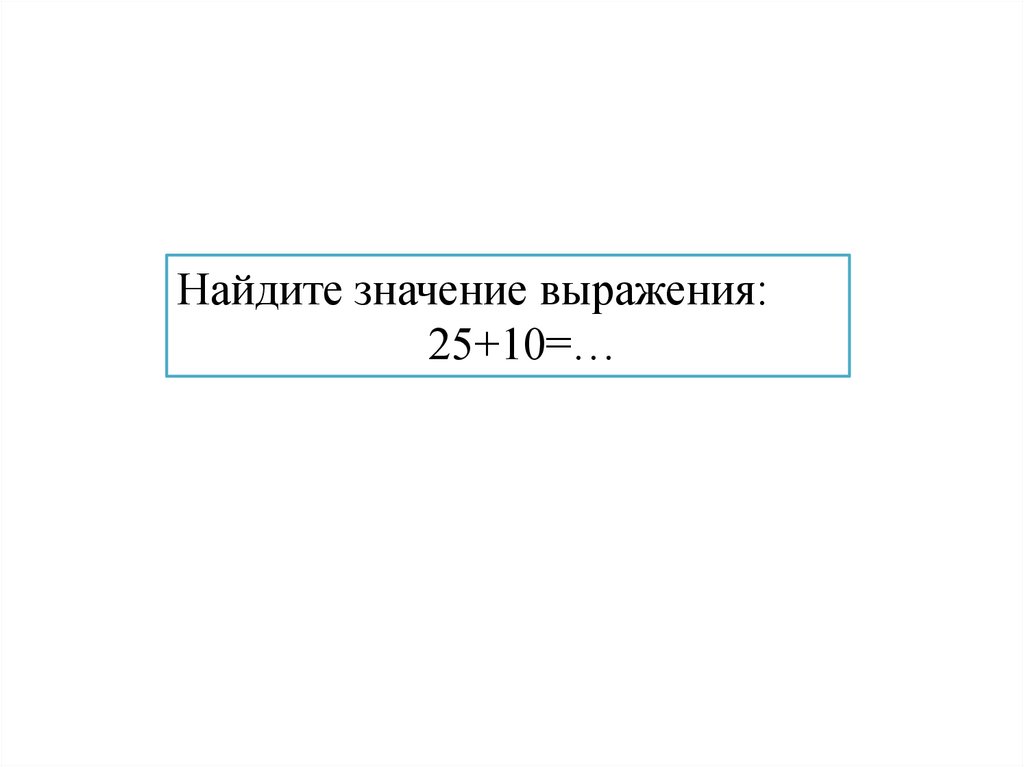 Найдите значение выражения:25+10=…