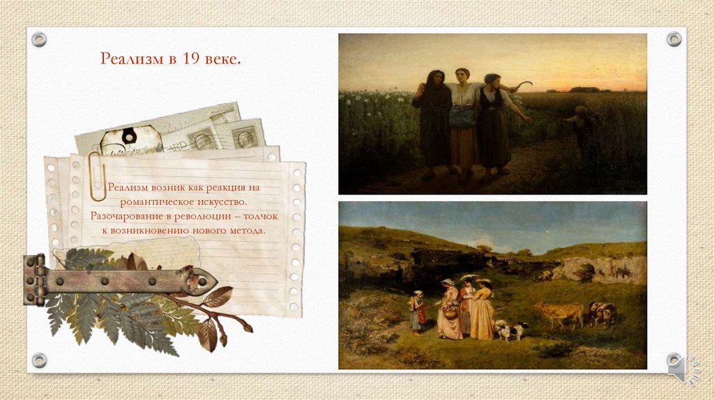 Реализм в 19 веке.Реализм возник как реакция на