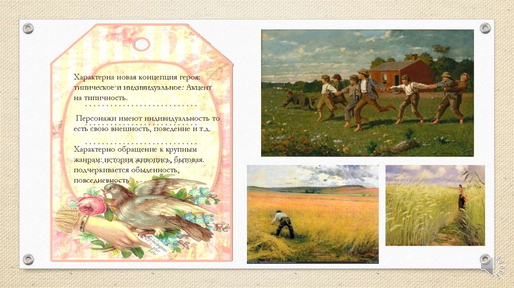 Характерна новая концепция героя:типическое и индивидуальное. Акцент