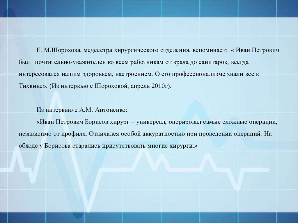 «Иван Петрович Борисов хирург – универсал, оперировал самые сложные операции,