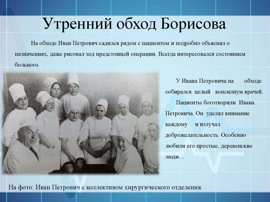 обходе у Борисова старались присутствовать многие хирурги.»
