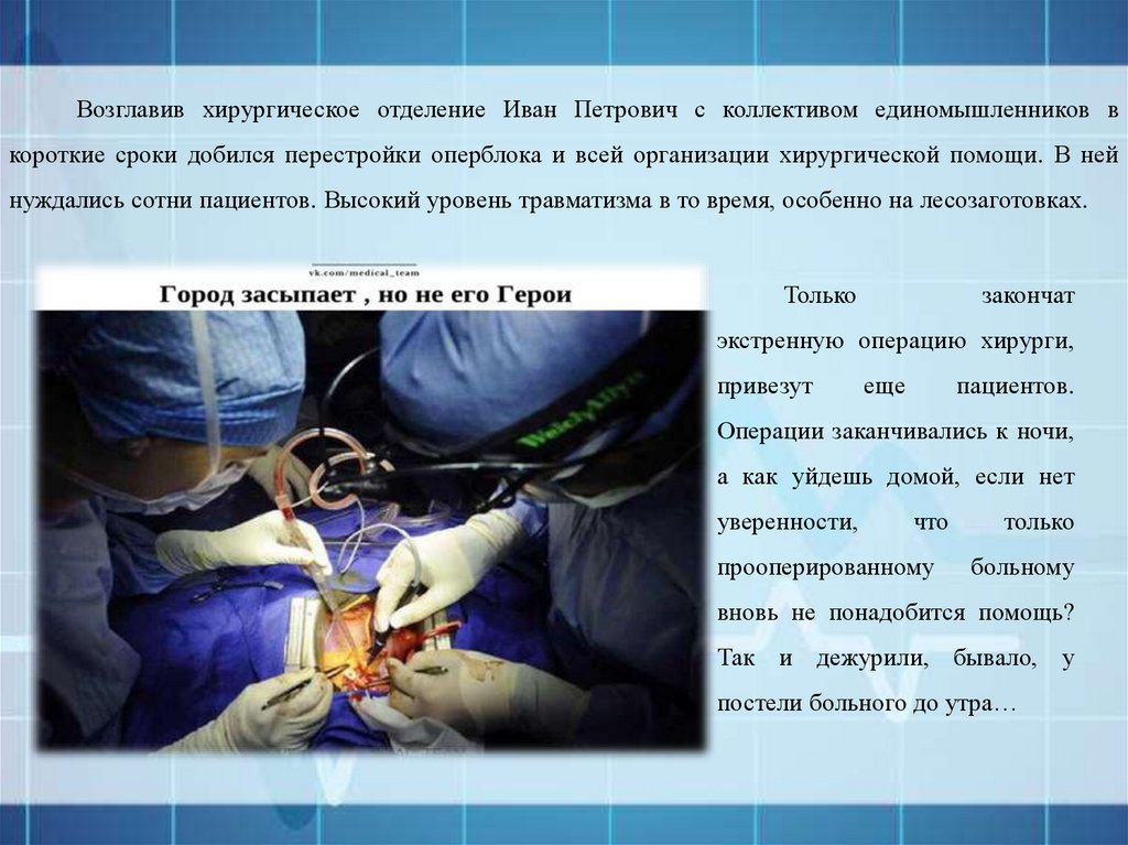 Возглавив хирургическое отделение, Иван