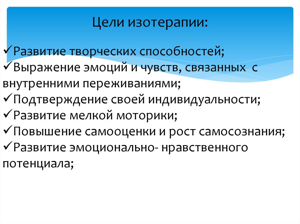 Цели изотерапии:Развитие творческих способностей;