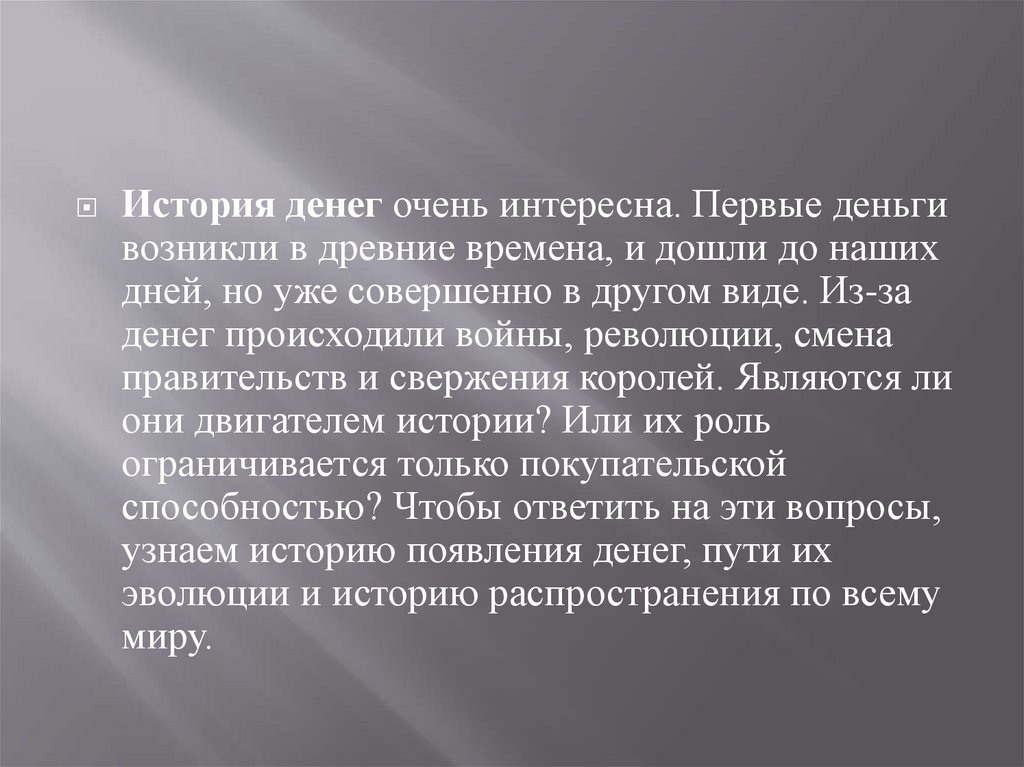 История денег очень интересна. Первые деньгивозникли в древние времена, и дошли до наших