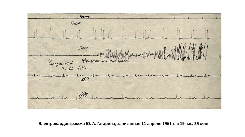 Электрокардиограмма Ю. А. Гагарина, записанная 11 апреля 1961 г. в 19 час. 35 мин7.