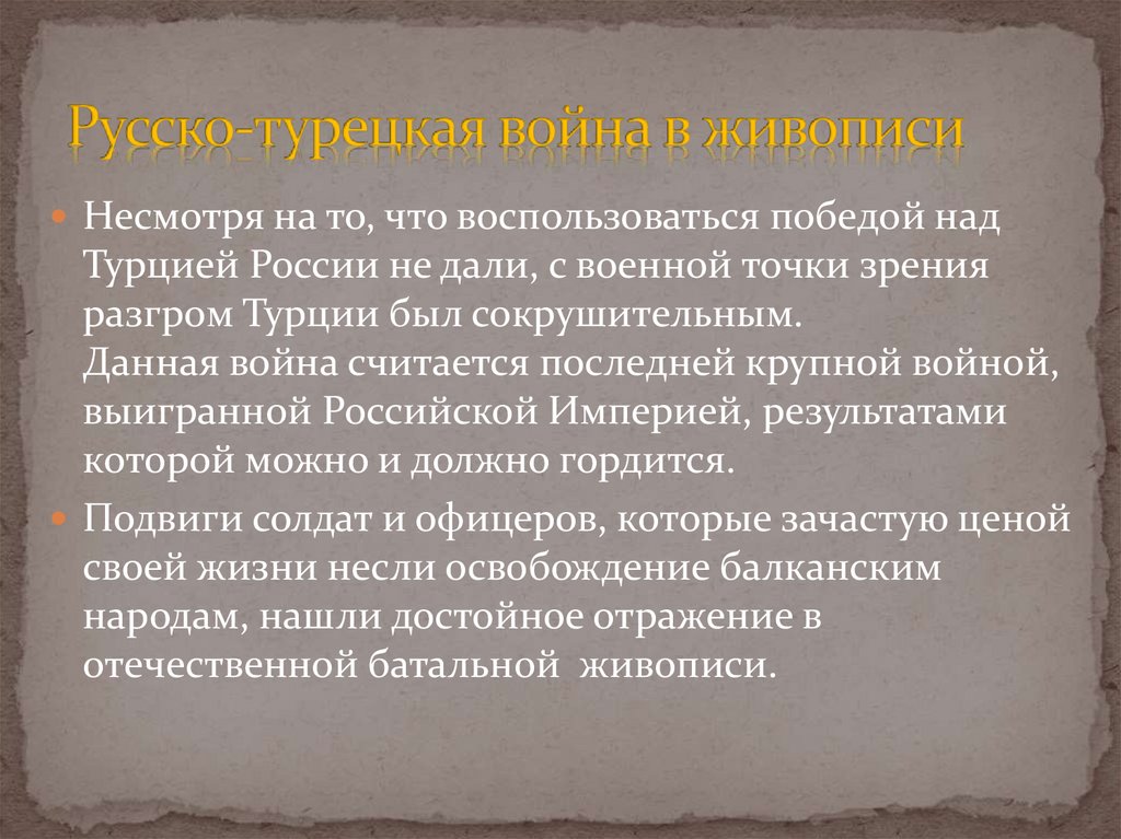 Несмотря на то, что воспользоваться победой надТурцией России не дали, с военной точки зрения