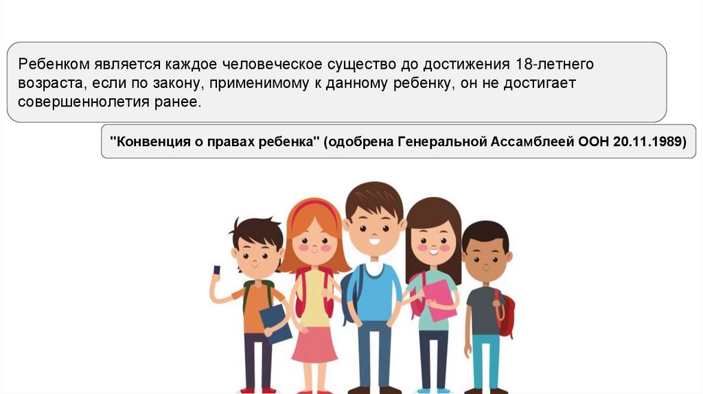 Ребенком является каждое человеческое существо до достижения 18-летнеговозраста, если по закону, применимому к данному ребенку, он не достигает