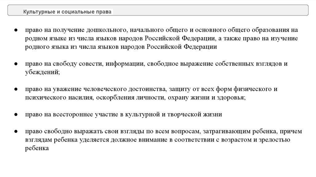 Культурные и социальные праваправо на получение дошкольного, начального общего и основного общего образования на