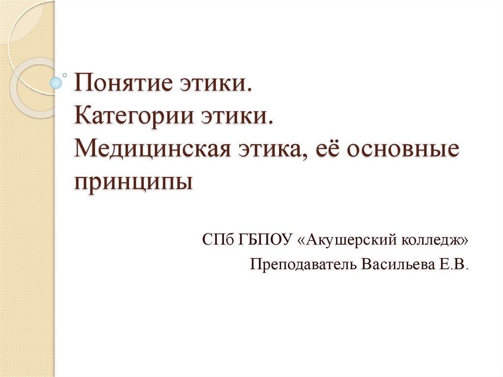 Понятие этики. Категории этики. Медицинская этика, её основные принципы
