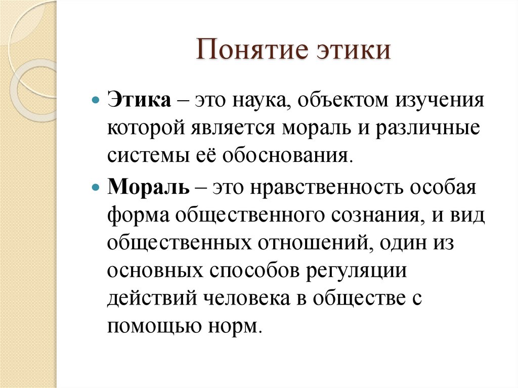 Понятие этикиЭтика – это наука, объектом изучения