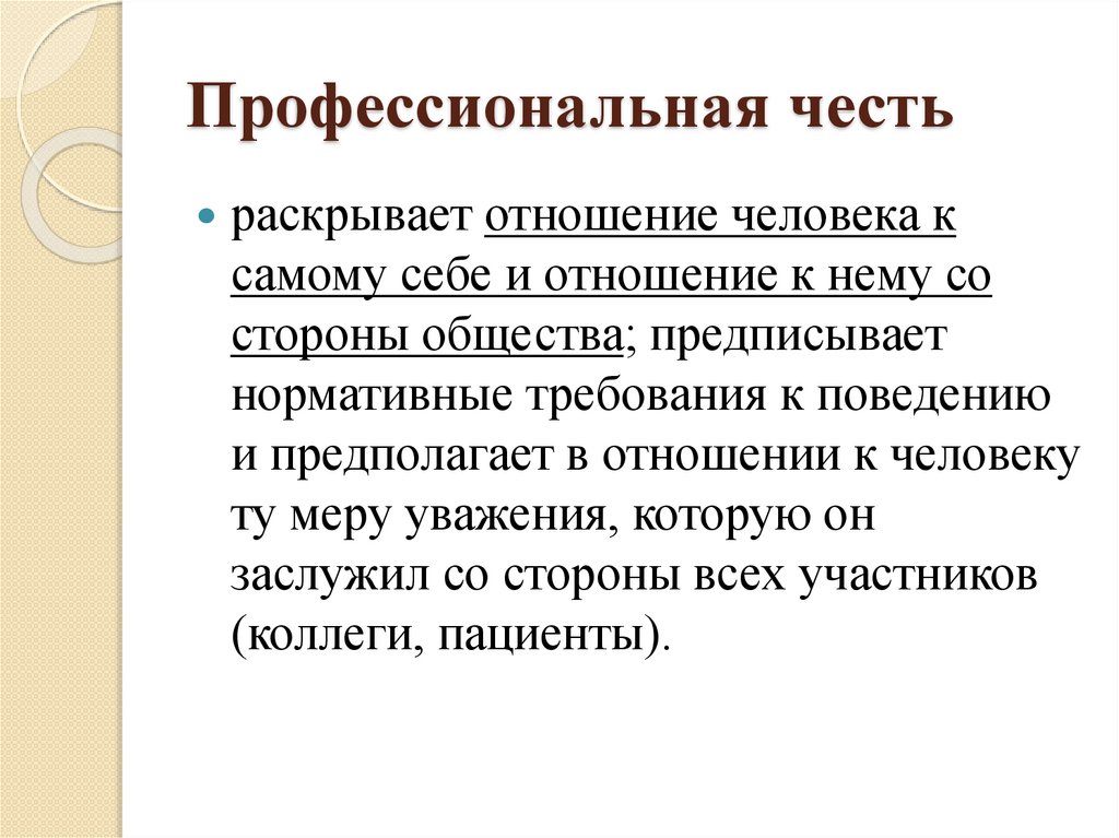 Профессиональная честьраскрывает отношение человека к